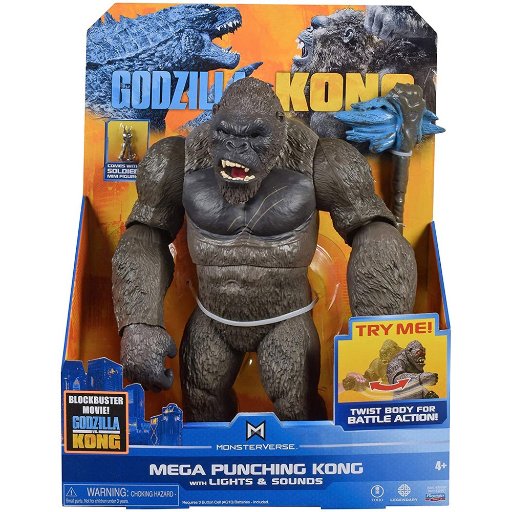 Mega Punching Kong tiene una altura imponente y tiene características de acción de batalla interactiva además de luces y sonidos. La figura viene con un hacha de batalla removible y una mini figura de soldado monarca. Colecciona todos los personajes de la exitosa película.